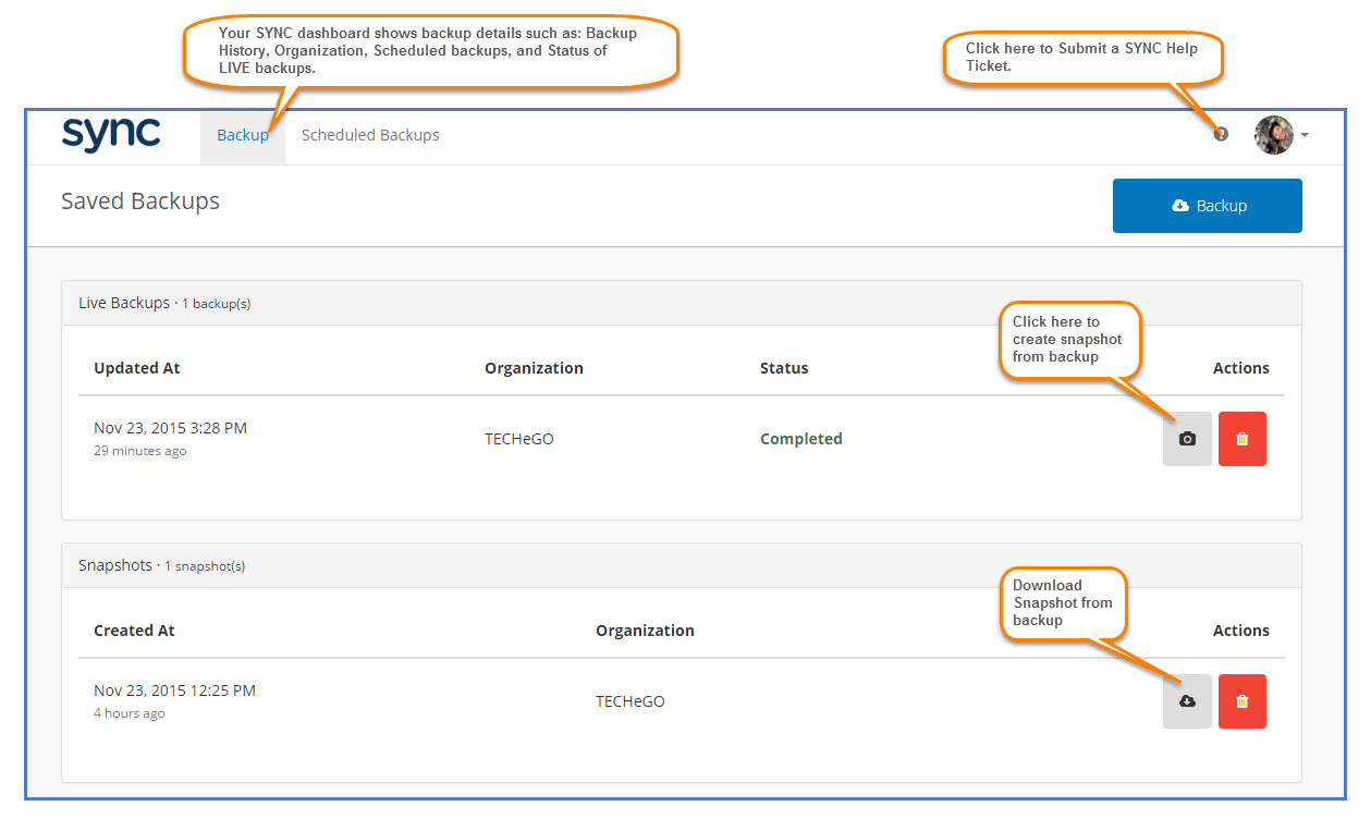Welcome to the new SYNC for Podio. Creating a backup is now as simple as a click of a button.