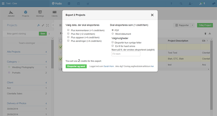 The Chrome extension makes it possible to export items from Podio to PDF or Word.