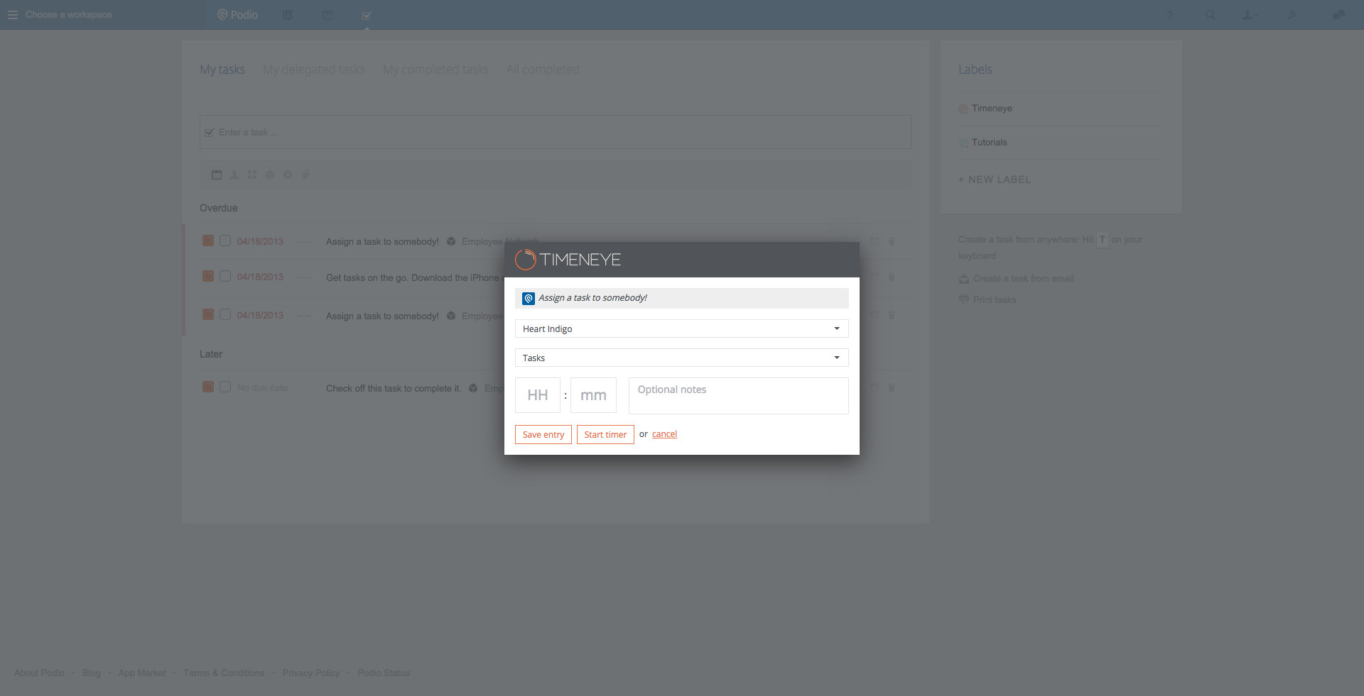 Timeneye Chrome integration allows you to track time for your tasks right in Podio.