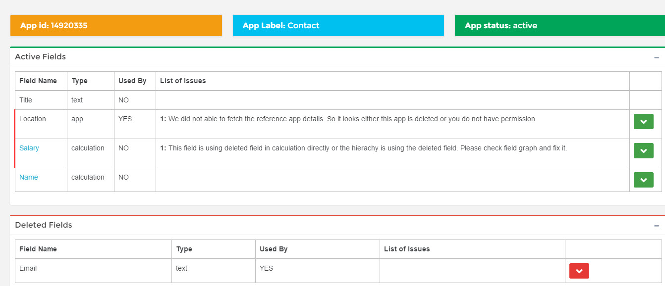 4) Identify if a field was deleted and the field is still being used in calculations.