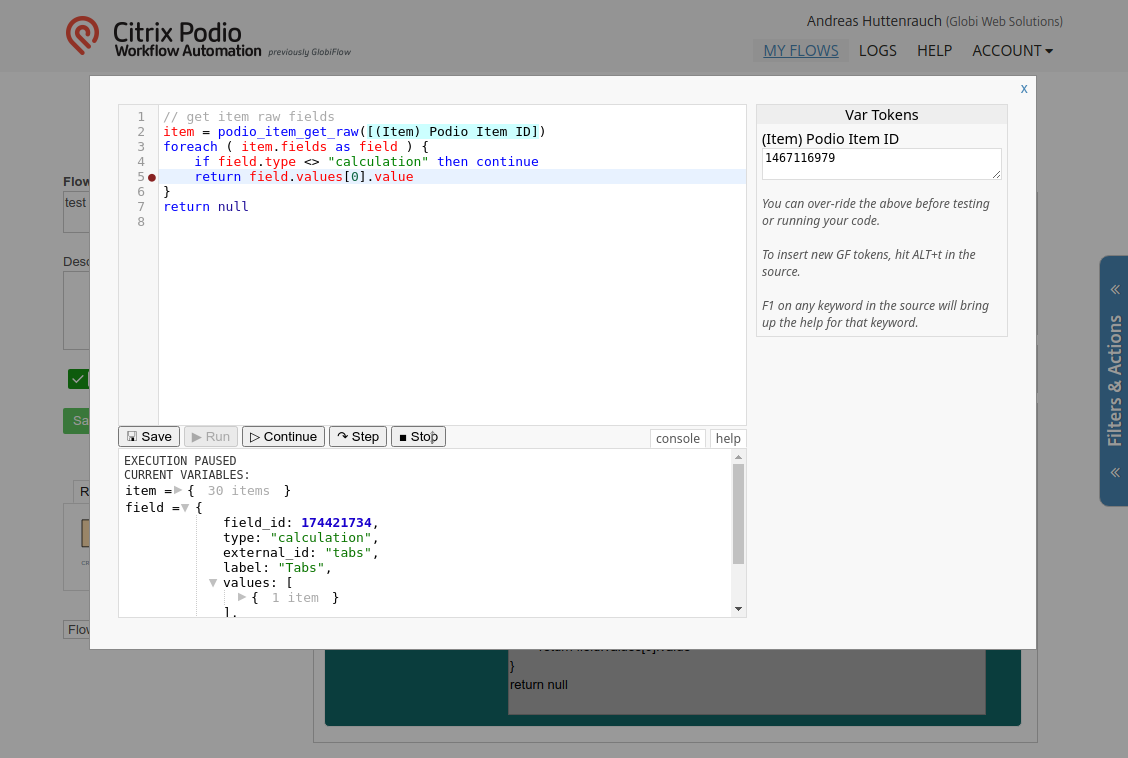- Execute Code in any Podio Workflow Automation Flow