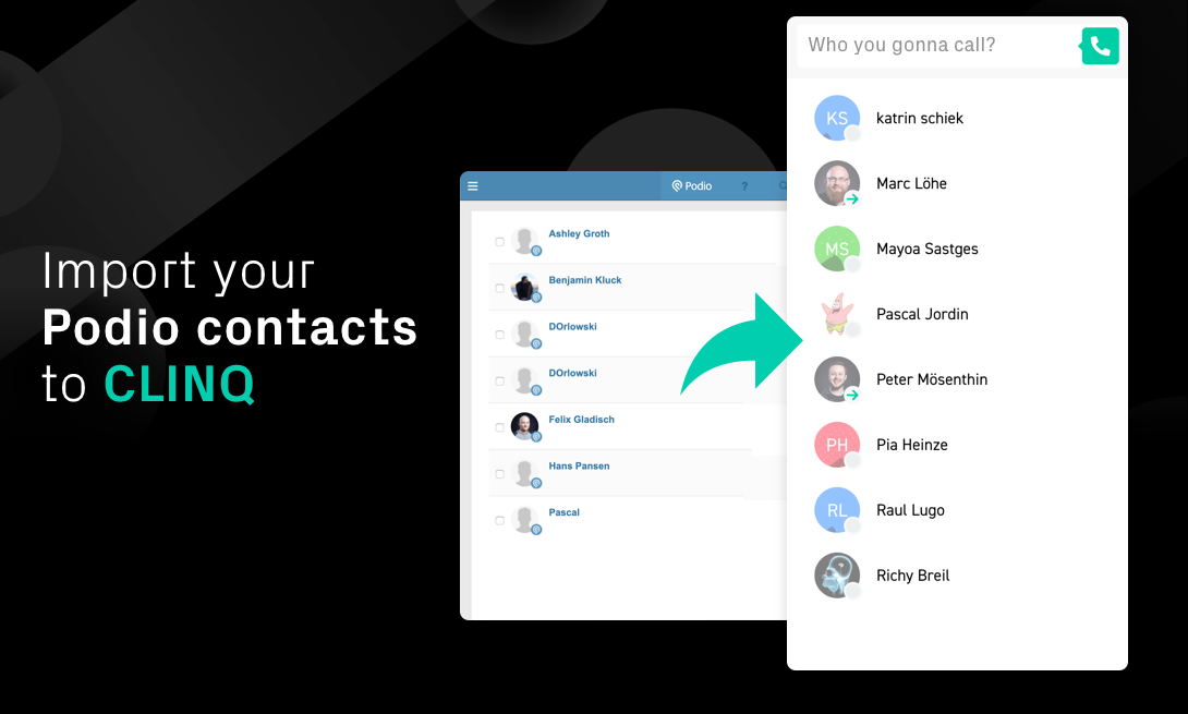 CLINQ is a browser based business phone solution from Germany. This integration syncs all of your contacts between Podio and CLINQ. With this integration you can, for example, use click2dial to make calls directly from Podio within CLINQ.