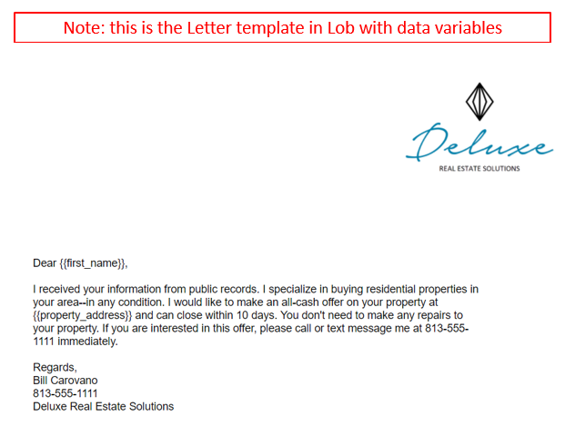 - Your Lob.com account will need to be set up with the template for your postcard and/or letter. The HTML template ID's are entered into the Settings item that also contains your API Key. Here is a link to an example HTML template for a letter: https://www.digiflowsoft.com/lob-letter-template and here is a link to example HTML templates for a postcard: https://www.digiflowsoft.com/lob-postcard-templates
