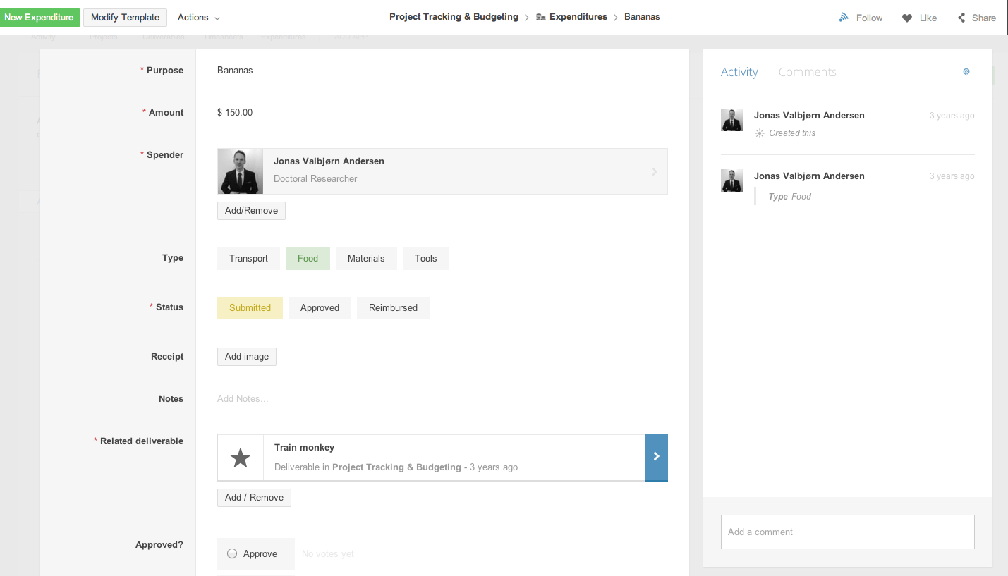 Post your project expenses in this app.