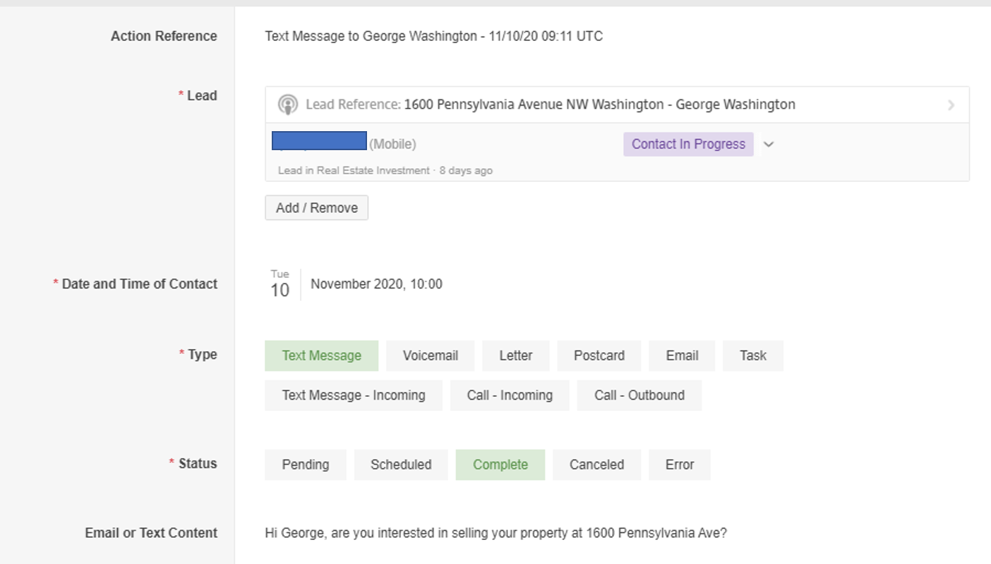 ActionsEach item in this app represents a contact action with a seller leadMore info