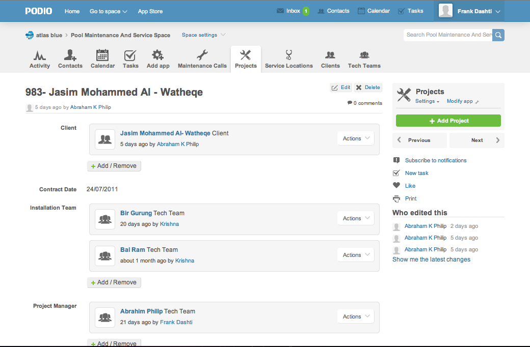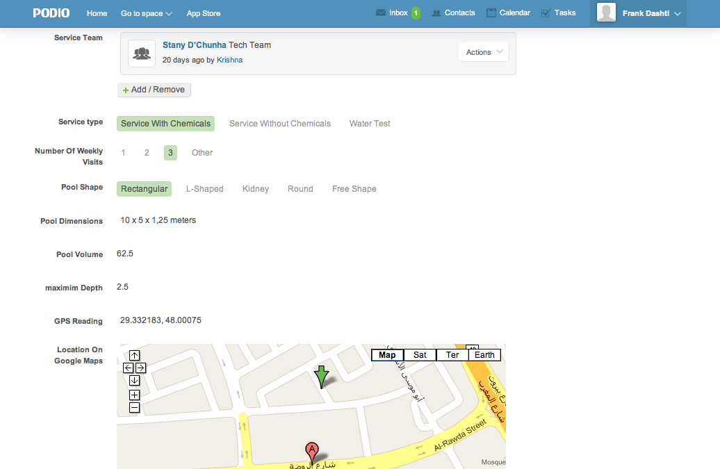 Cool interview with Frank here: http://blog.podio.com/2011/08/05/servicing-the-swimming-pools-of-kuwait-on-podio/