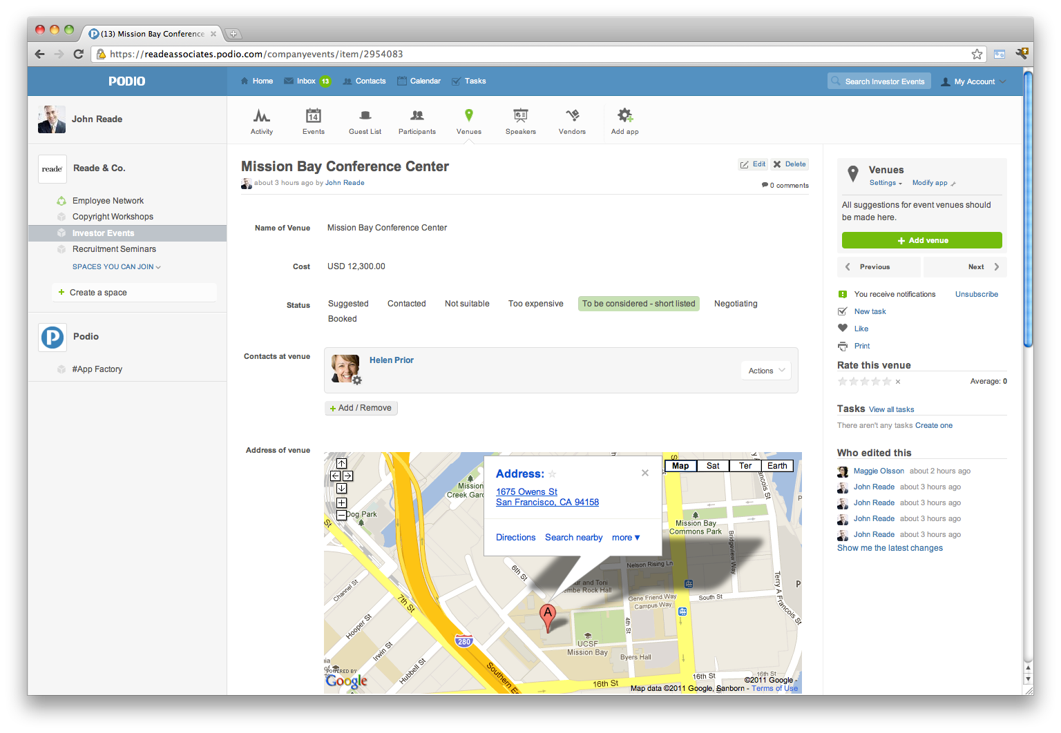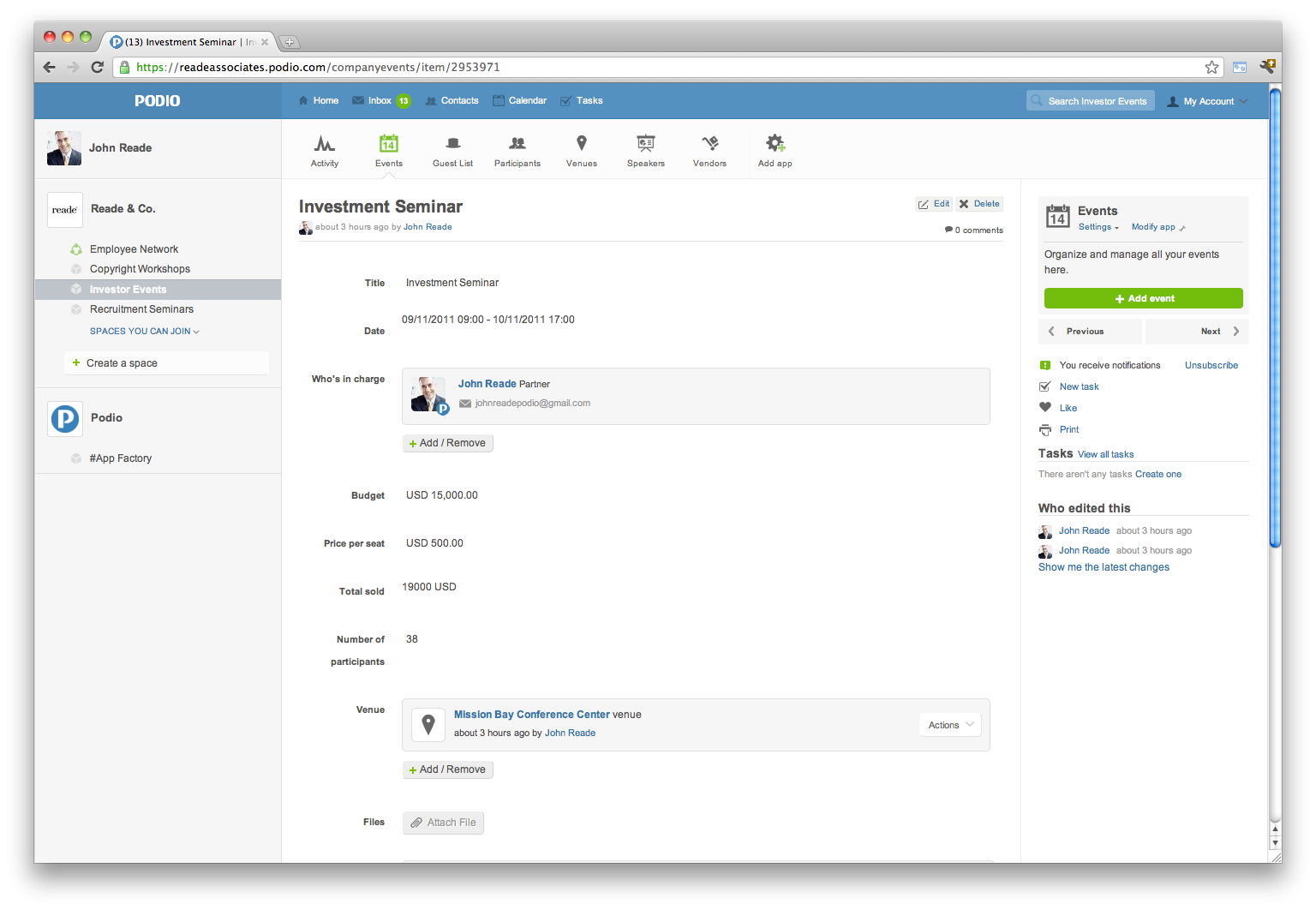 Podio’s event planning app makes it easy to work online with colleagues and vendors to organize your event’s venue, speakers, and attendees. Throw a well executed event, with less effort.