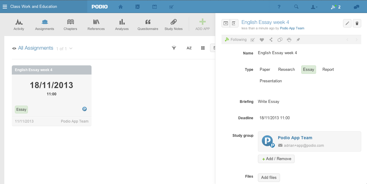 ChaptersDefine each chapter of your assignment and delegate to group members in this app.More info